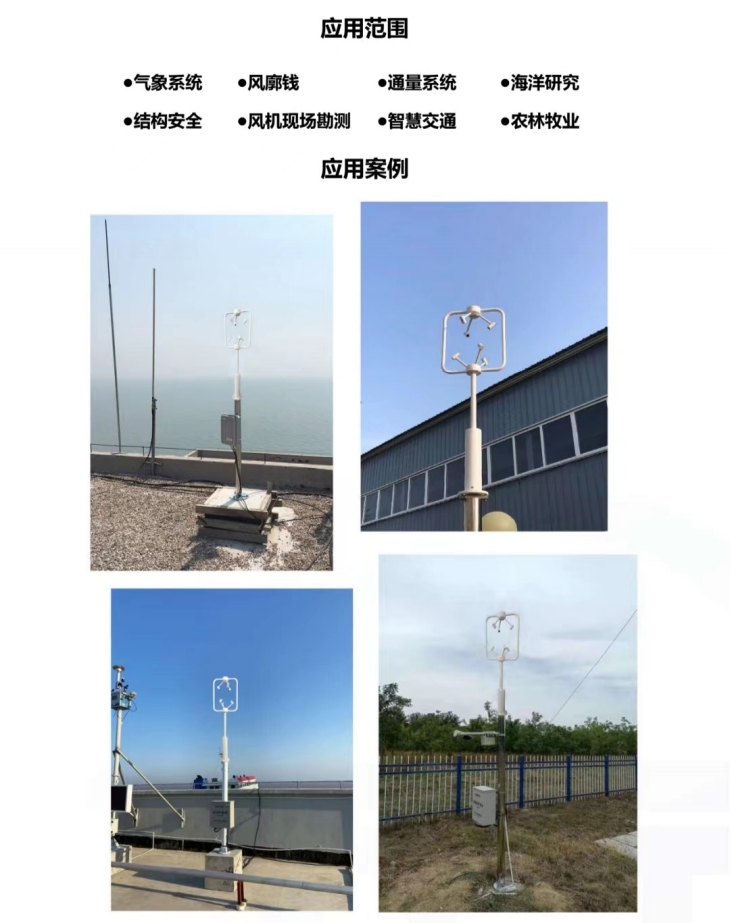 EC-A6型三維超聲波風速風向傳感器采用先進的超聲波測量技術,獨特的兩根支撐桿結構設計,大大減小了風阻的影響,提升了測量的精度。它具有全金屬材質,沒有任何移動部件,堅固耐用的特點,可以同時測量水平和垂直方向的風向, X/Y/Z軸風速(即U、V、W矢量輸出),聲溫、聲速等參數。適應在各種環境下,全天候、長久的正常工作,為各領域的氣象監測提供可靠數據。三維超聲波風向風速傳感器用來測量近地風向、風速。廣泛應用于城市環境監測、風力發電、氣象監測、橋梁隧道、航海船舶、航空機場等領域。